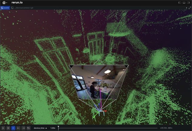 Project Aria is a research platform developed by Meta Reality Labs Research to push the state of the art in egocentric AI research. Rerun is used to visualize sequences in their Aria Dataset Explorer.